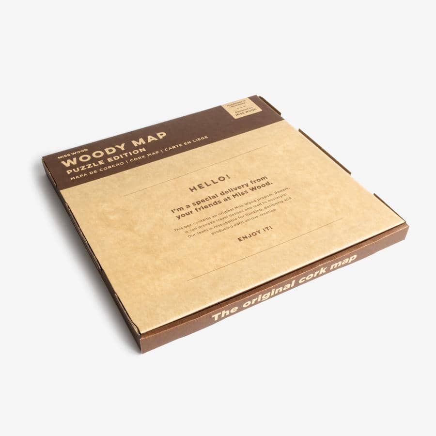 Tienes frente a ti el más pequeño de nuestro Woody Map . Mapa rompecabezas en corcho de 3 piezas o 6 piezas que no necesitan marco y son fáciles de colgar en cualquier pared. Apuesta por este formato si lo que buscas es un regalo original, económico y que ocupa poco espacio.