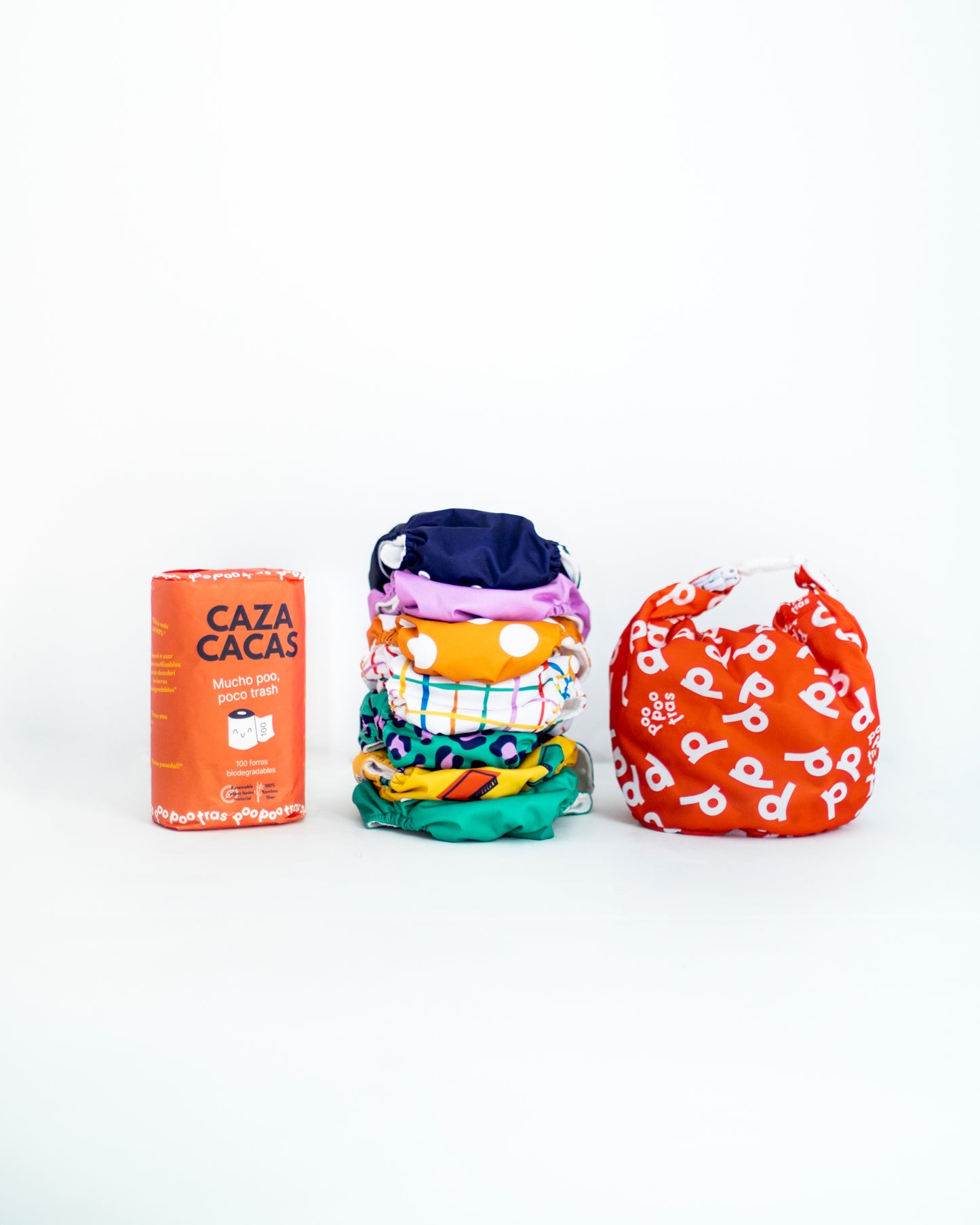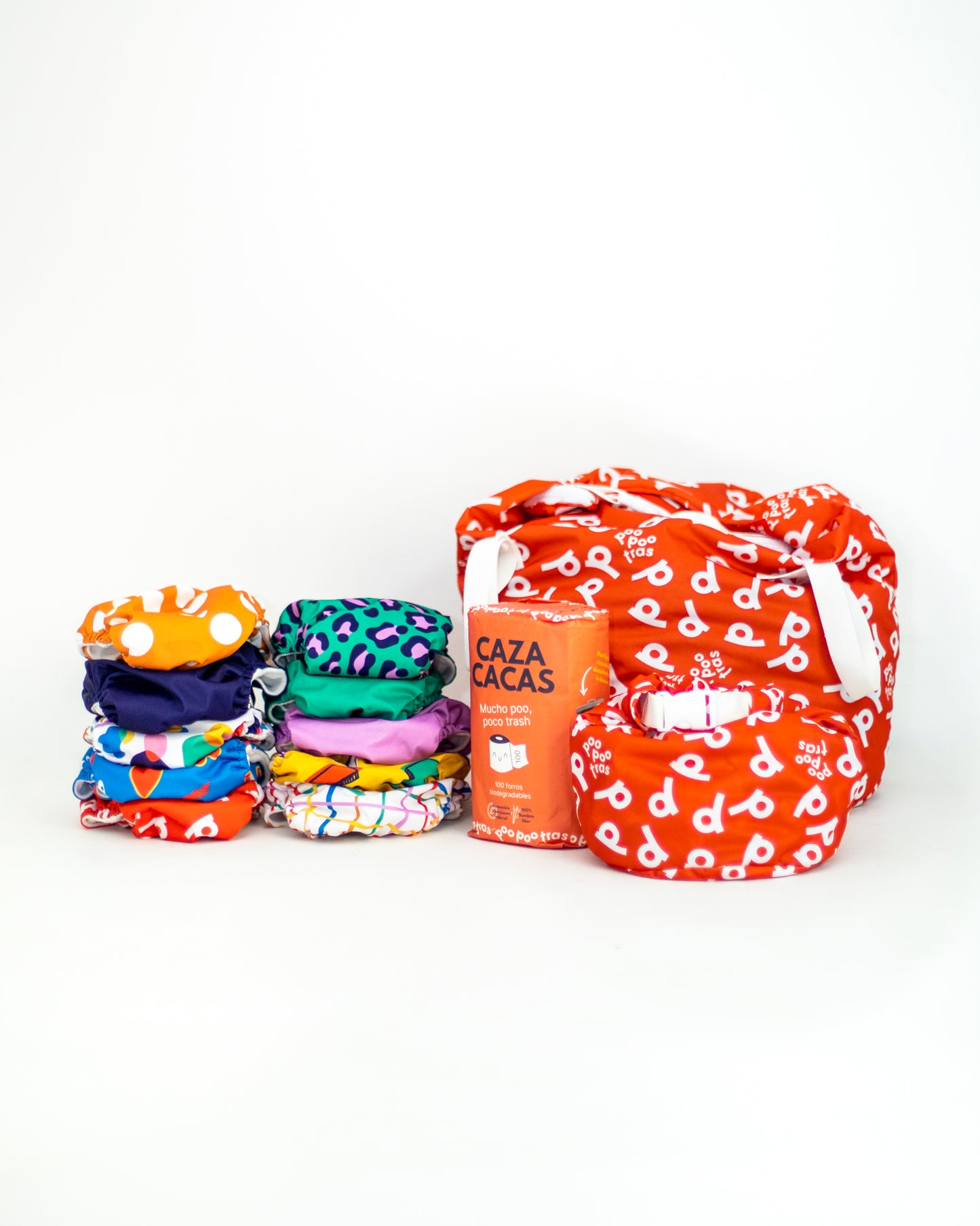 Cada Poo Poo Tras incluye una funda con el diseño que elijas y dos compresas absorbentes: una para flujo medio y otra para flujo abundante. ¡Recibirás un pañal completo y listo para usar desde el primer momento!